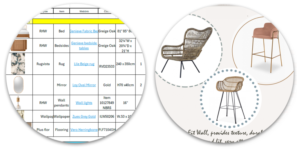 SOURCING + INVENTORYS + FURNITURE SCHEDULES